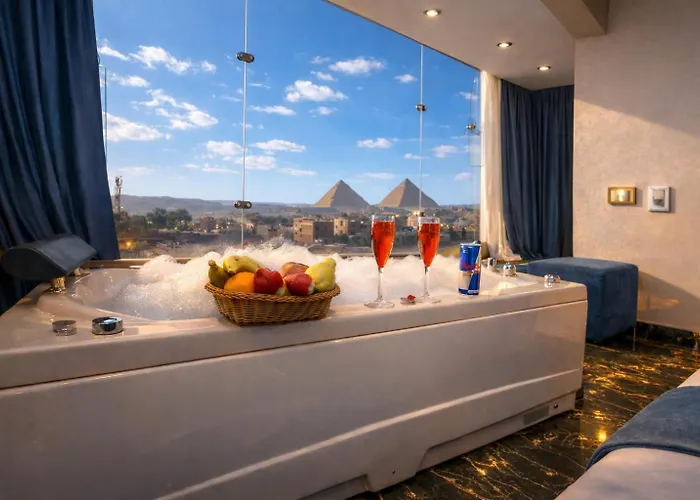 Situado en el distrito Guiza, este hotel de 3 estrellas está a 25 minutos a pie de la Esfinge. Los amantes de la historia disfrutarán visitando la Pirámide de Kefrén ( 2,1 km) y el Pirámide estratificada ( 4 km). El Pharaonic Pyramids Inn & Jacuzzi también está a 2,2 km de las Pirámides de Guiza.